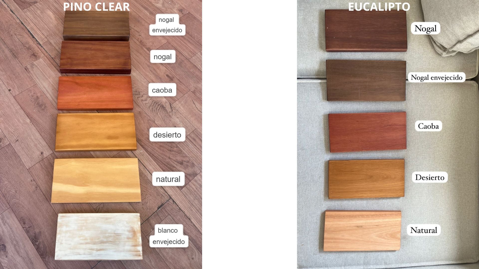 Trabajamos con madera maciza de pino o eucaliptus, conocidas por su durabilidad, resistencia y acabados impecables.