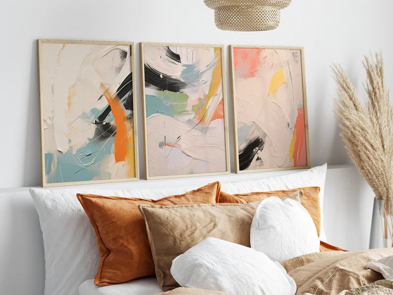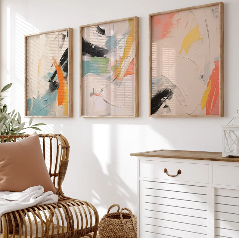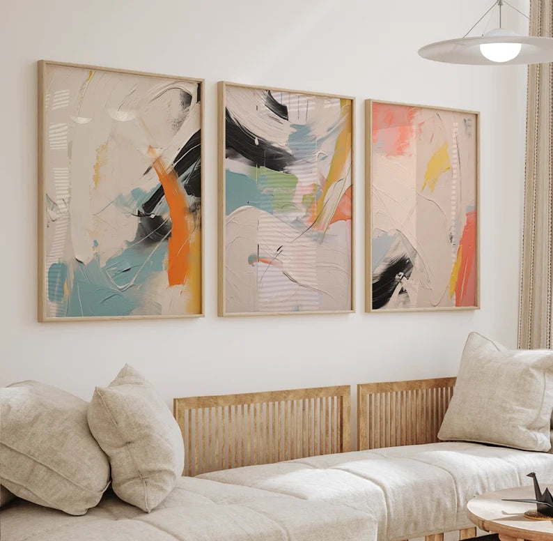 Set x3 Cuadros Abstract X Marco Natural
